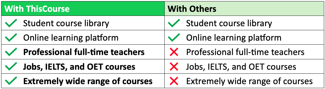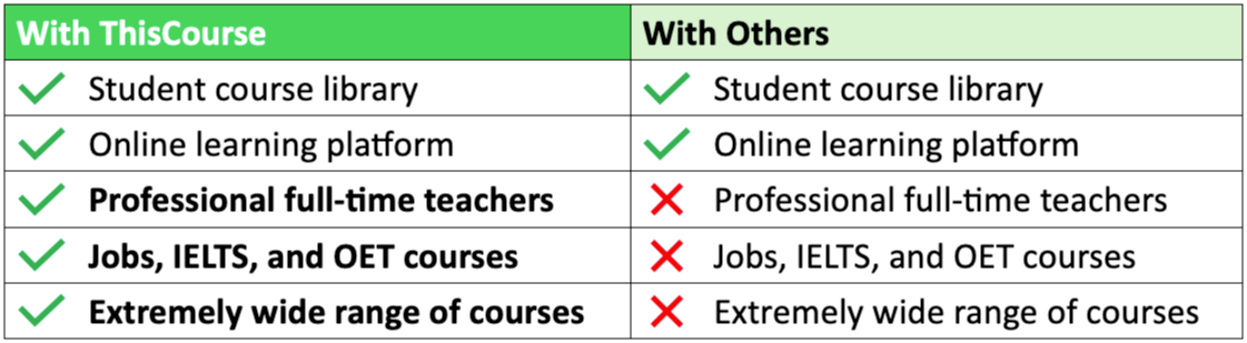 ThisCourse English courses are online versions of our face-to-face courses in Australia. Your students will get all the benefits of these courses, without actually coming here.